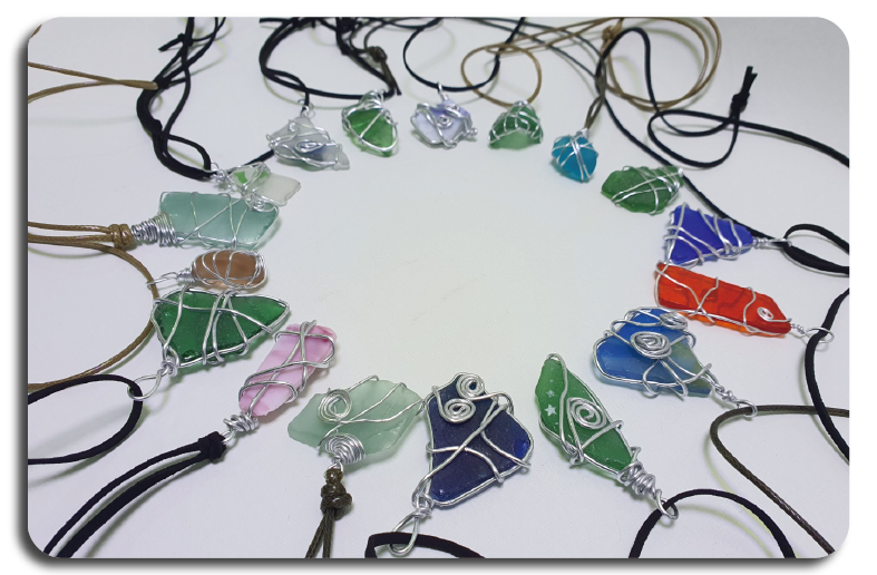 마모된 다양한 색상의 바다유리를 이용해 나만의 독특하고 개성있는 공예품을 만듭니다.